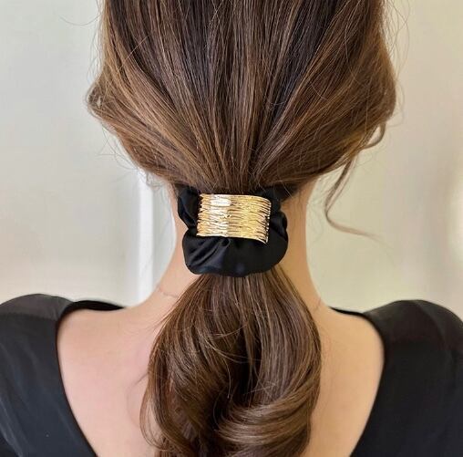 a908 (グレージュ)シュシュ ヘアアクセサリー まとめ髪 ヘアゴム メタル プレート こなれ感 韓国