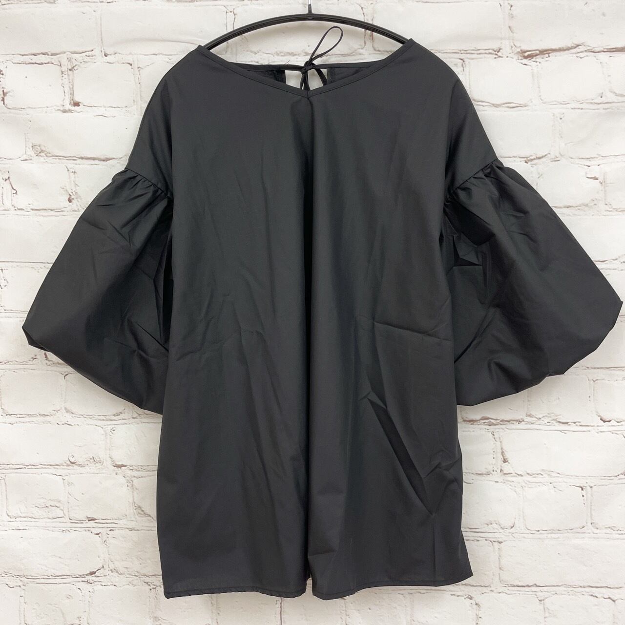a903 ボリュームスリーブブラウス バックリボン レディース トップス 夏 ブラウス ランドネック Vネック 2タイプ 半袖 体型カバー ゆったり トップス プルオーバー