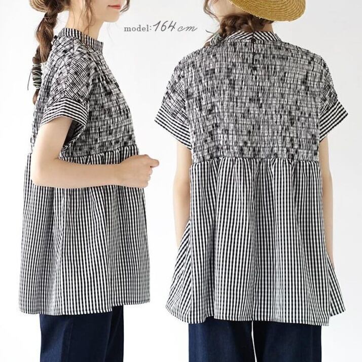 a896 シャーリングギャザー フレアブラウス チェニック