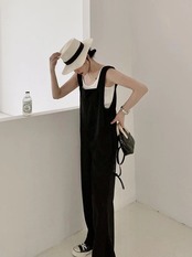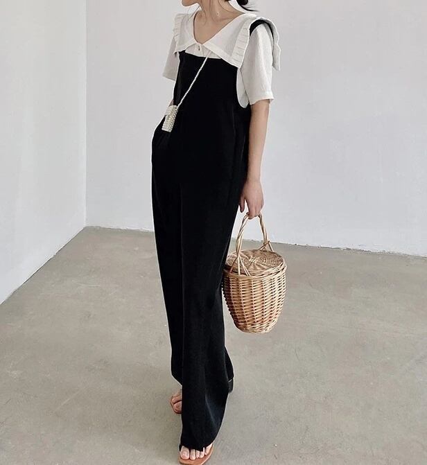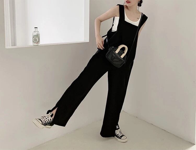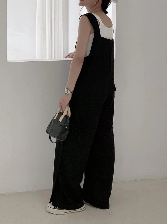 a892 サイドスリッドサロペット オールインワン サロペット パンツ レディース ガウチョパンツ ワイトパンツ ロングパンツ